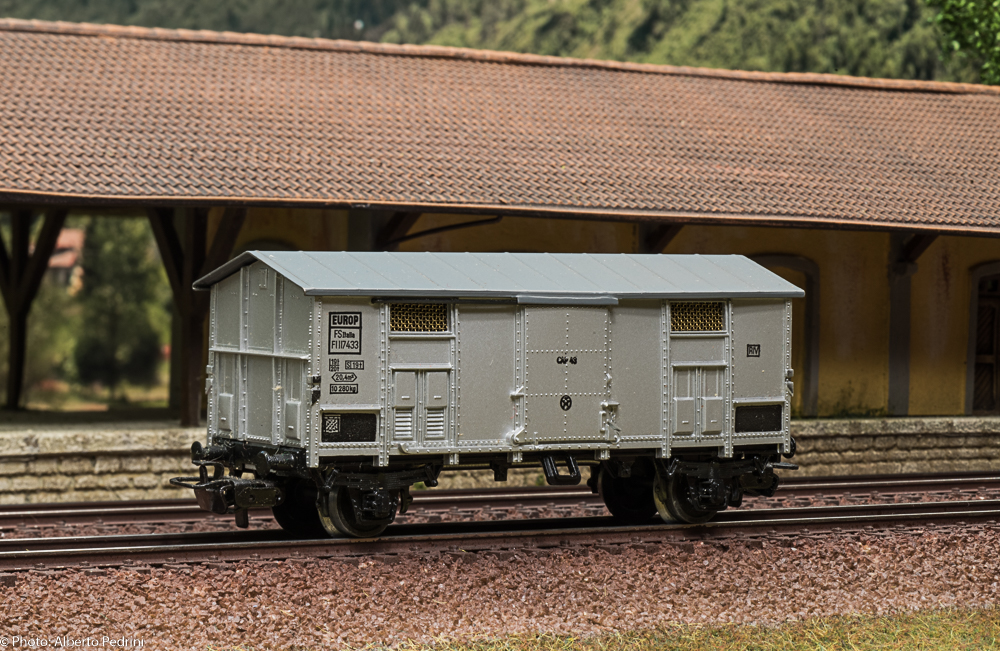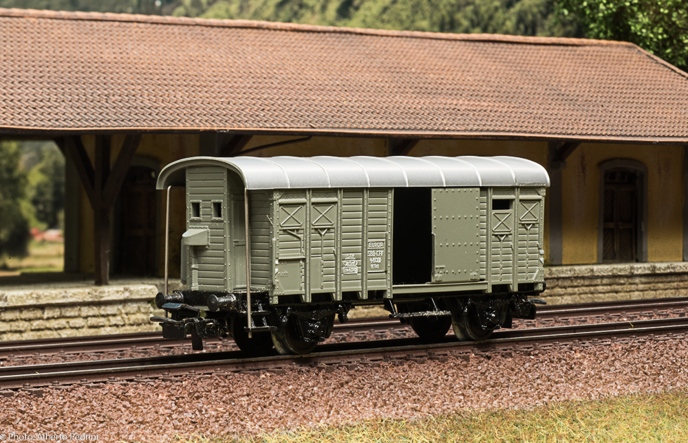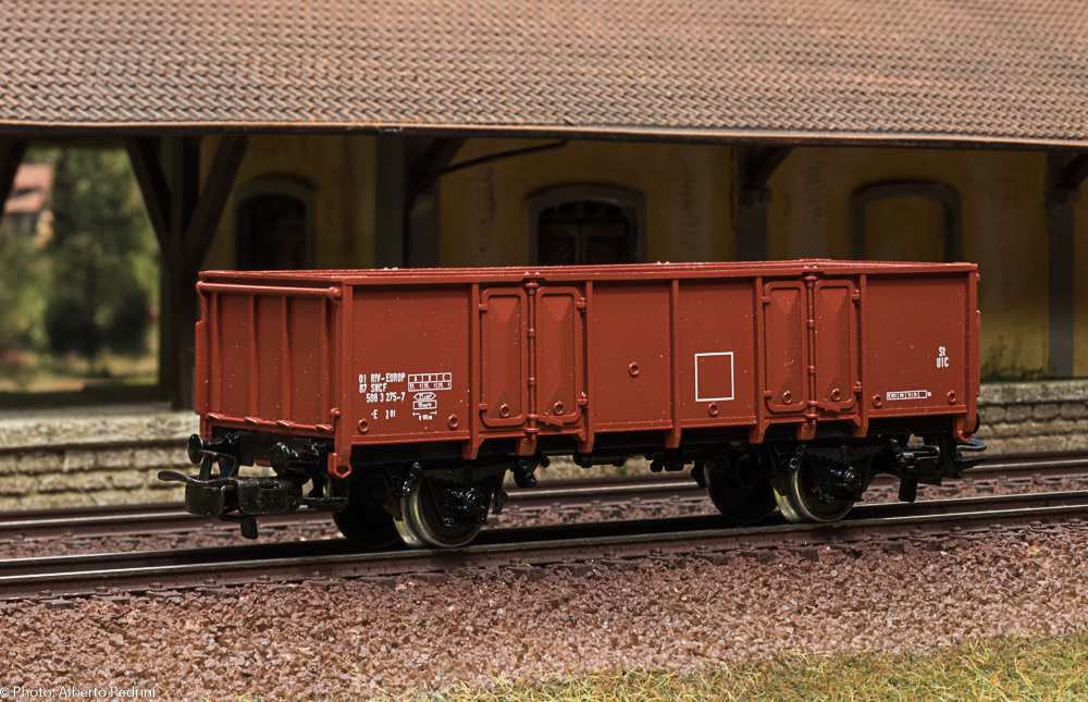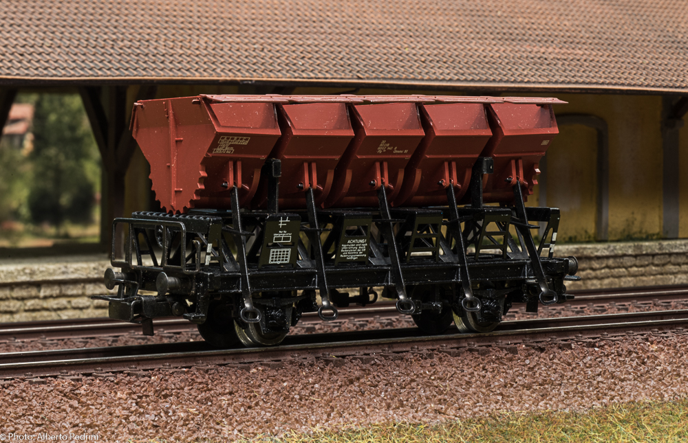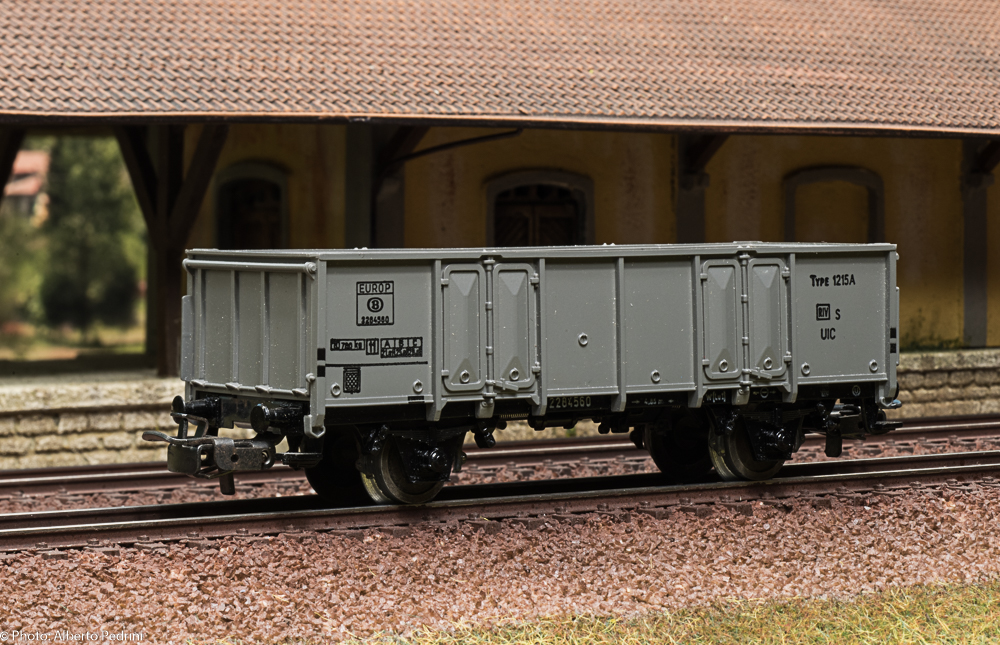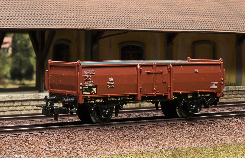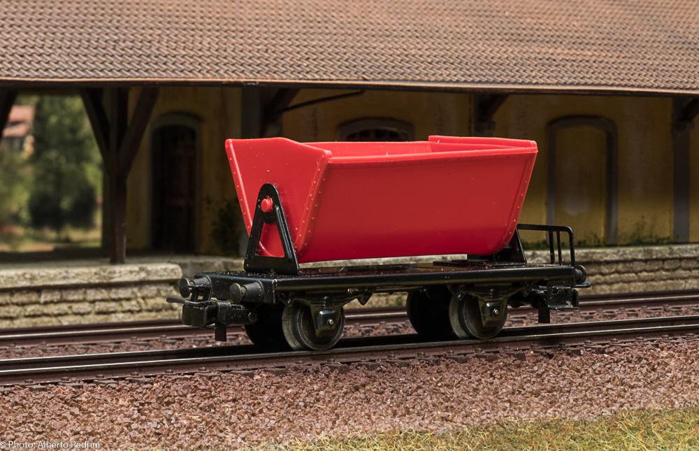 dal 1952 al 1954 gli assi erano con le estremità cilindriche e scorrevano nell’apposito incavo coprimozzo simile a quelli che avevano già i vagoni in pressofusione, con ruote piene larghe 2,5 mm e aventi diametro 12 mm; dal 1955 gli assi furono realizzati con la parte terminale più sottile per migliorare la scorrevolezza, e quindi fu modificato anche l’alloggiamento con un foro passante; cambiarono le ruote, tornite all’interno, larghe 2,2 mm e aventi diametro 11,8 mm. Dal 1952 al 1956 i vagoni erano equipaggiati il gancio a occhiello piccolo e arrotondato.