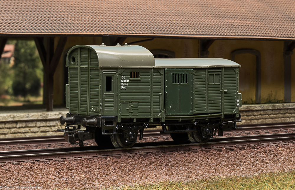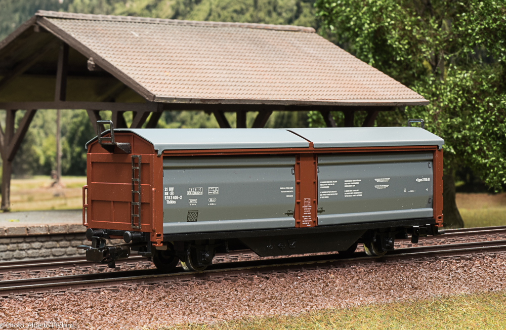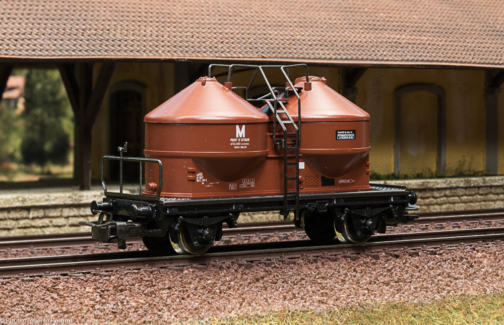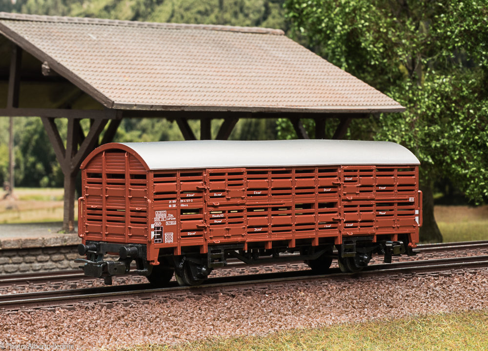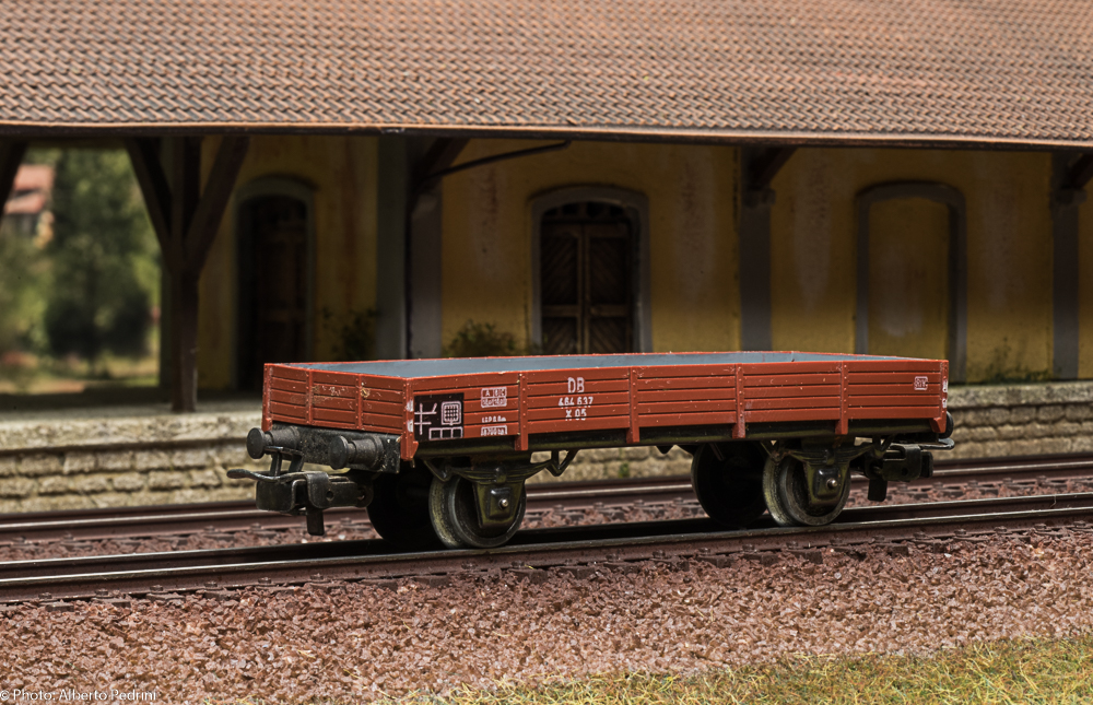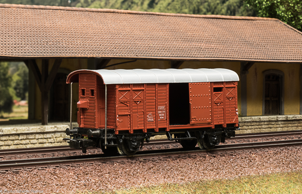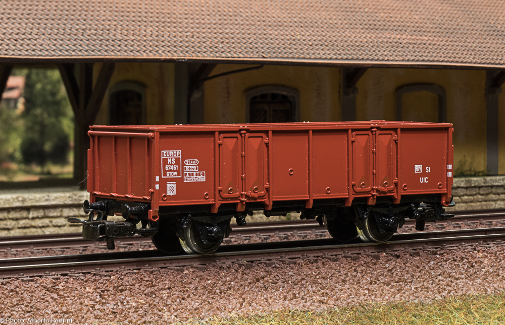 dal 1952 al 1954 gli assi erano con le estremità cilindriche e scorrevano nell’apposito incavo coprimozzo simile a quelli che avevano già i vagoni in pressofusione, con ruote piene larghe 2,5 mm e aventi diametro 12 mm; dal 1955 gli assi furono realizzati con la parte terminale più sottile per migliorare la scorrevolezza, e quindi fu modificato anche l’alloggiamento con un foro passante; cambiarono le ruote, tornite all’interno, larghe 2,2 mm e aventi diametro 11,8 mm. Dal 1952 al 1956 i vagoni erano equipaggiati il gancio a occhiello piccolo e arrotondato.
