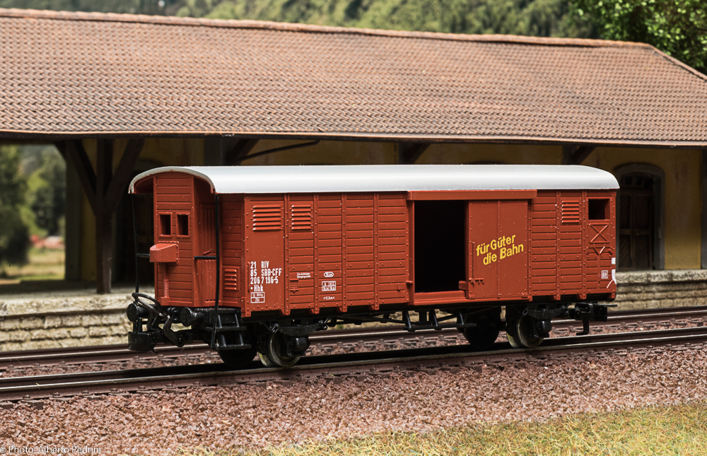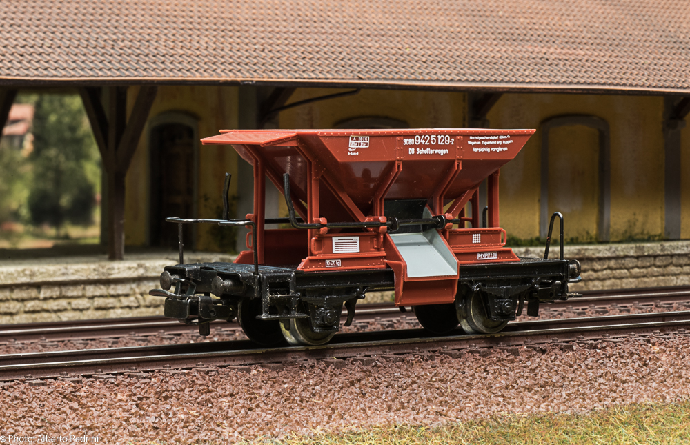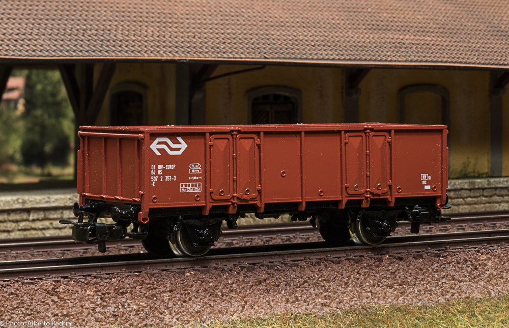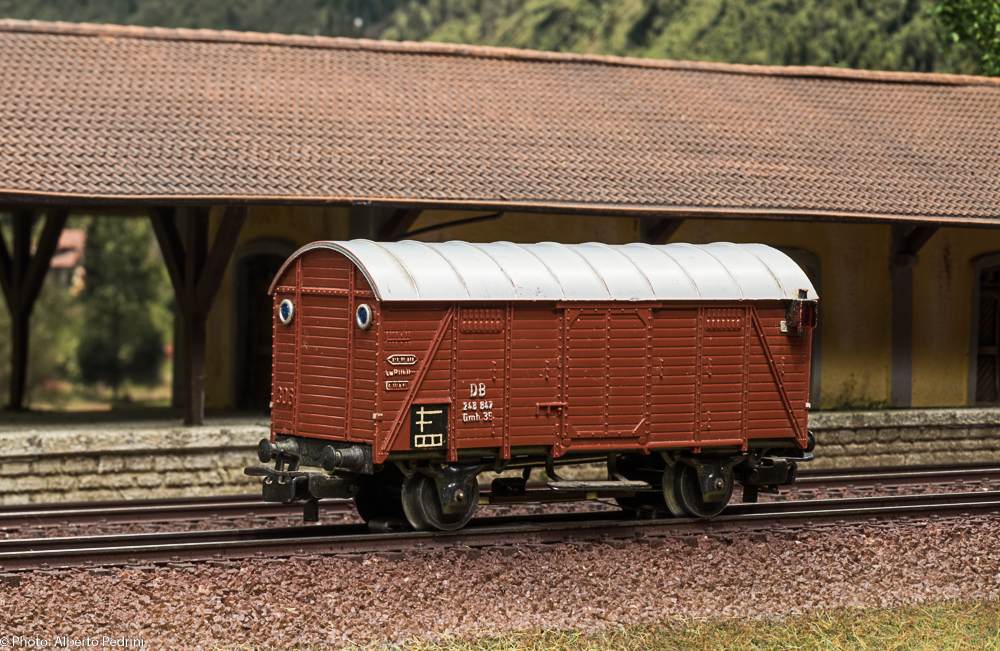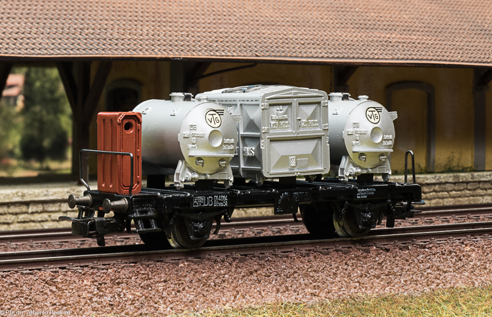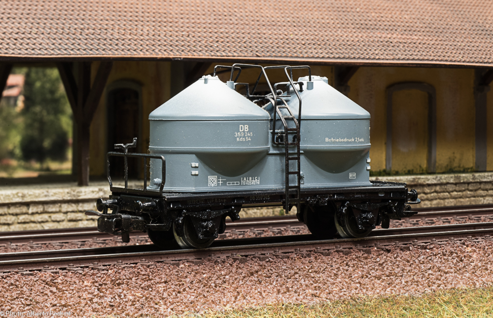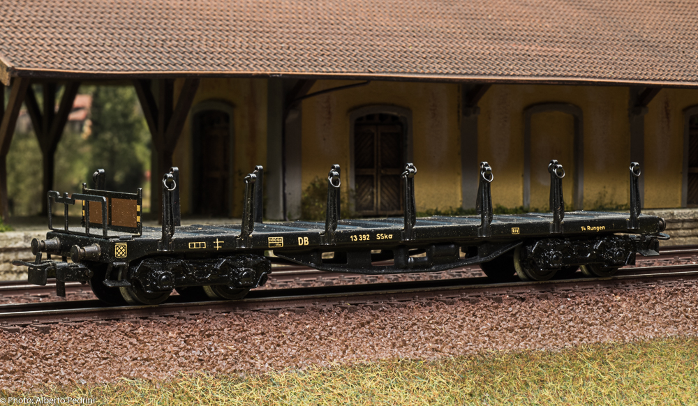 dal 1952 al 1954 gli assi erano con le estremità cilindriche e scorrevano nell’apposito incavo coprimozzo simile a quelli che avevano già i vagoni in pressofusione, con ruote piene larghe 2,5 mm e aventi diametro 12 mm; dal 1955 gli assi furono realizzati con la parte terminale più sottile per migliorare la scorrevolezza, e quindi fu modificato anche l’alloggiamento con un foro passante; cambiarono le ruote, tornite all’interno, larghe 2,2 mm e aventi diametro 11,8 mm. Dal 1952 al 1956 i vagoni erano equipaggiati il gancio a occhiello piccolo e arrotondato.
