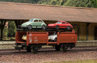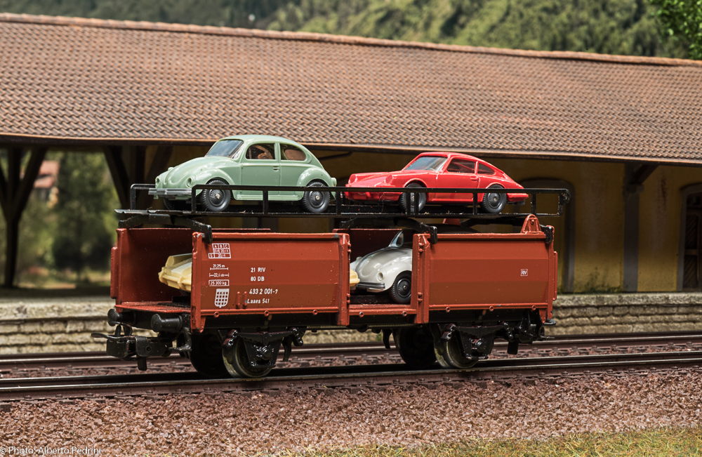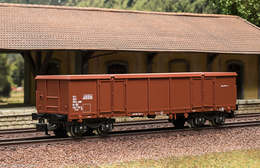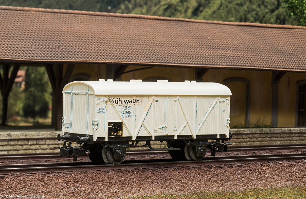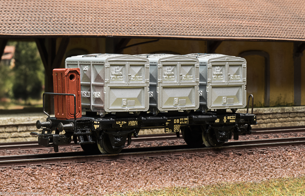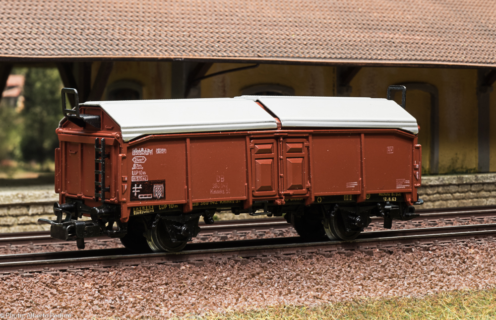 Diversa è la genesi dei vagoni della serie 46xx. Essi furono progettati e commercializzati per sostituire la produzione dei pressofusi. La presentazione sul catalogo avvenne nel 1956, con una prima serie di modelli. Questi vagoni possedevano caratteristiche di maggiore fedeltà riproduttiva, sia come scala che come dettagli, rispetto alla serie 45xx, con telai in genere non unificati e in pressofusione, e sovrastruttura in termoplastica. Nel 1956 portavano il numero di catalogo ancora a tre cifre con il 3 iniziale a volte seguito da cifre o lettere, numerazione che anche in questo caso cambiò nel 1957 con le quattro cifre 46xx. Una delle differenze più significative fu l’adozione di un particolare gancio con presganciatore largo, soluzione adottata solo nel 1956. Infatti a far tempo dal 1957 fu adottato il gancio Relex con presganciatore piccolo, in seguito installato su quasi tutti i rotabili. Le ruote erano dello stesso tipo della serie 45xx prodotta dal 1955 in poi, tornite all’interno, larghe 2,2 mm e aventi diametro 11,8 mm. Negli anni ’70 alcuni vagoni della serie 46xx furono equipaggiati con ruote larghe 2,1 mm e aventi diametro di 10,3 mm. Altra differenza si notava nel colore dei vagoni a tinta marrone, braun nel 1956/’57 e rotbraun dal 1958 in avanti. Infine un accenno alle iscrizioni (quando presenti) sulla cassa: si è passati da scritte in rilievo a tampografie nei modelli più recenti. Un difetto riscontrato su alcuni modelli di questa serie è la deformazione della termoplastica che determinava un certo incurvamento della cassa; questo fenomeno si riscontra maggiormente in moltissimi vagoni a bordi bassi (4506/7/8/9), in diversi frigoriferi e in quelli a tramoggia, ma si riscontrava anche in altre serie costruttive. Tale difetto venne eliminato solo alla fine degli anni ’60, quando fu cambiata la composizione fisico-chimica della termoplastica. La produzione dei vagoni 46xx è continuata sino alla fine degli anni ’90, con gli ultimi modelli realizzati interamente in plastica e dotati del gancio corto.