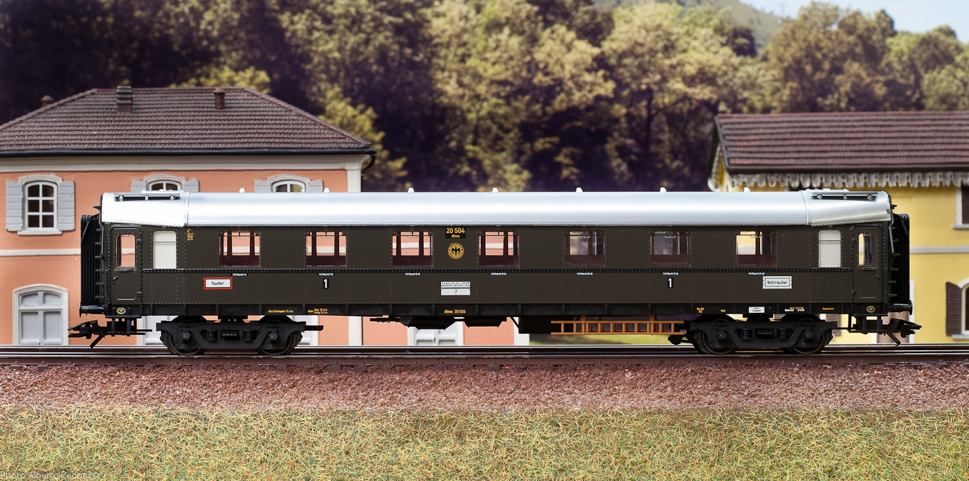 "Carrozze-luccio - Le prime carrozze unificate della Ferrovia Tedesca del Reich. Al principio degli anni Venti, allorché si decise di riunire insieme le Compagnie ferroviarie dei singoli stati nella Compagnia della Ferrovia Tedesca del Reich, ci si trovava a confronto con una pressoché incalcolabile molteplicità di materiale rotabile, la qual cosa nell’esercizio quotidiano di un’impresa condotta in modo severo provocava dei problemi e dei costi più elevati. Non soltanto in occasione dell’assegnazione di commesse di progetto di locomotive, bensì anche per la nuova acquisizione di carrozze, che dopo l’elevato logoramento degli anni di guerra era urgentemente necessaria, si prese la decisione per l’unificazione e ci si concentrò quindi ad abbassare massicciamente i costi. Nel settore delle carrozze passeggeri vennero rapidamente conseguiti dei risultati e già nel 1922 o rispettivamente nel 1923 poteva essere presentata in pubblico la prima famiglia di carrozze interamente tedesca, di progettazione completamente nuova: la famiglia delle „Carrozze-luccio“ in tecnica costruttiva di acciaio. Il nome di queste assai famose carrozze si deduceva dalle estremità della carrozza che si rastremavano a forma di cuneo, le quali trovarono impiego già presso la Ferrovia Sassone dello Stato. Tuttavia si mise in evidenza che questa inconsueta forma non rappresentava un vero miglioramento, né esteticamente né tecnicamente, e già nel 1928 nei progetti costruttivi essa venne nuovamente scartata. Comune a queste carrozze, oltre alla tecnica costruttiva di acciaio – il legno veniva ancora impiegato solo più per le pareti interne ed i rivestimenti dei soffitti – è la struttura costruttiva a scompartimenti con corridoio laterale, un tetto a volta di elevata resistenza in luogo del tetto a lucernario prussiano, scalette di salita sulle pareti di testa e finestrini laterali fortemente arrotondati superiormente."